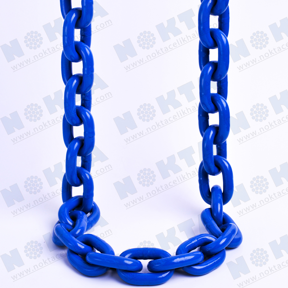 Grade 100 zincirler özel ısıl işlem görmüş sulandırılmış çelikten oluştuğu için yüklere karşı aşırı mukavemet sağlamaktadır. Güvenli çalışma yüklerinin 5 katı yükte kopma testi uygulanarak onay almaktadır.